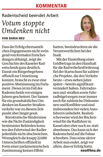 Wir haben uns für den verstärkten Ausbau der Infrastruktur für den Radverkehr in Kassel eingesetzt. Dazu haben wir 2018 ein Bürgerbegehren durchgeführt, dass im September 2019 in einem Beschluss der Kasseler Stadtverordnetenversammlung mit einer Teilübernahme unserer Ziele gemündet ist.